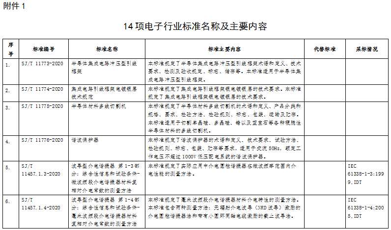 根據標準制修訂計劃,相關標準化技術組織已完成《半導體集成電路沖壓型引線框架》等14項行業標準和《光伏器件 第2部分:標準光伏器件的要求》等26項國家標準的制修訂工作。在以上標準批準發布之前,為進一步聽取社會各界意見,現予以公示,截止日期2020年10月23日。