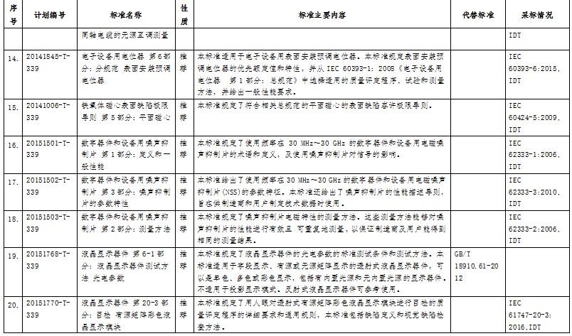 電子行業14項行業標準和26項國家標準報批公示