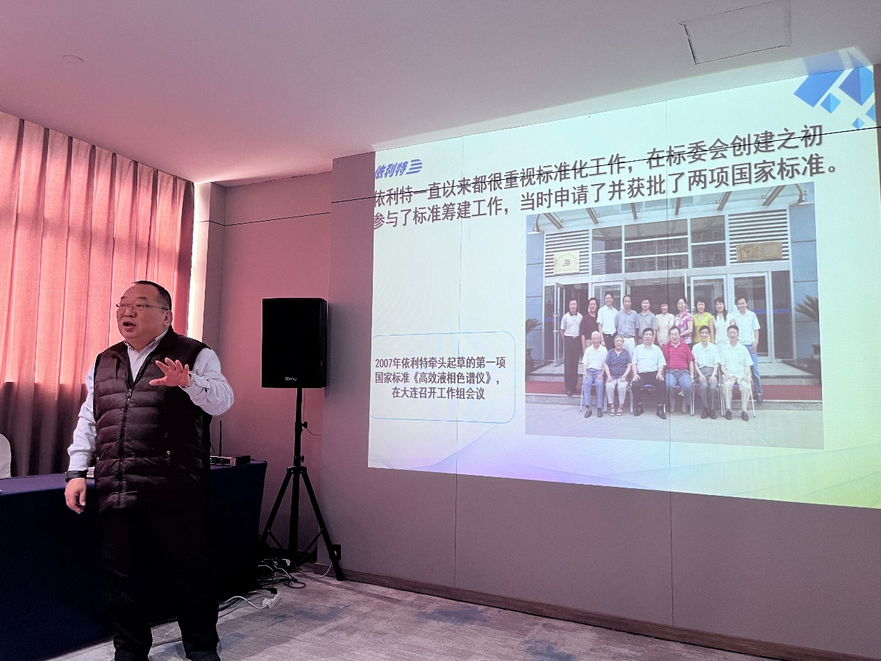 會(huì)議開(kāi)始,由起草單位蘇州依利特科技集團(tuán)有限公司董事長(zhǎng)李彤博士發(fā)表了題為《依利特液相色譜與標(biāo)準(zhǔn)化發(fā)展之路》的開(kāi)場(chǎng)報(bào)告。李彤博士講述了公司30年來(lái)在液相色譜領(lǐng)域的深耕歷程,隨后詳細(xì)介紹了公司以“系列全、產(chǎn)線全、覆蓋全”為特點(diǎn)的產(chǎn)品及服務(wù)體系,并回顧了依利特與分析儀器標(biāo)委會(huì)近20年的深厚合作情誼。