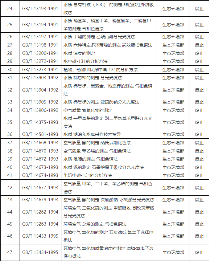 國家標準化管理委員:84項環境監測方法標準被廢止
