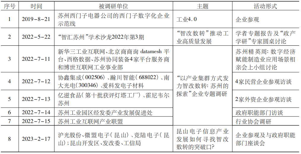 表5 蘇州制造業(yè)數(shù)字化改造專(zhuān)題調(diào)研活動(dòng)清單