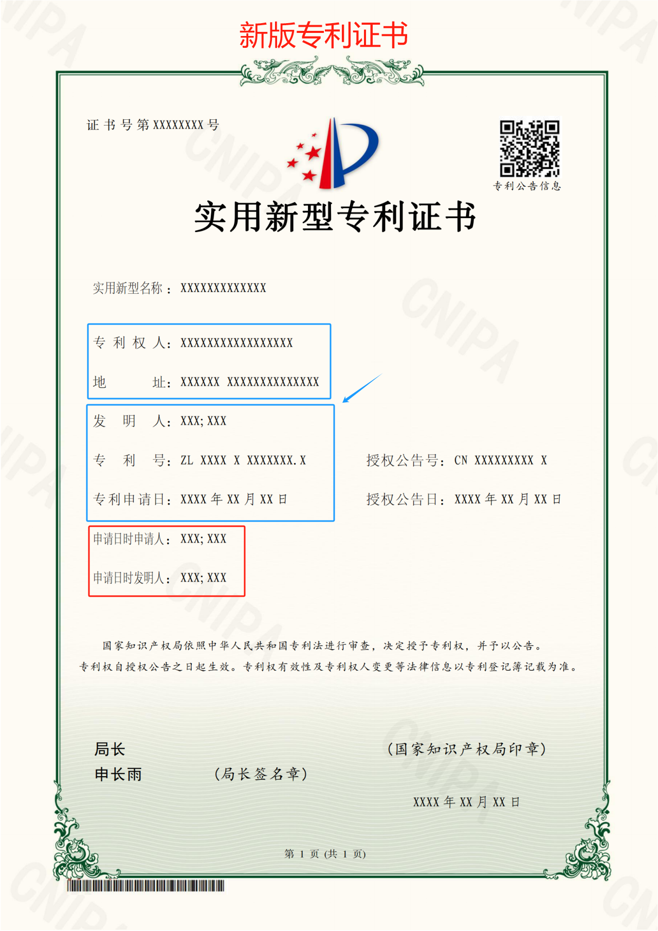 此外,實(shí)用新型專利證書和外觀設(shè)計(jì)專利證書也有相同變化。