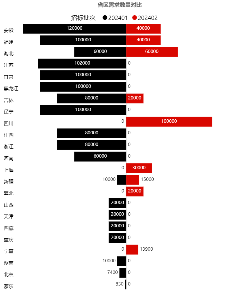 主要的需求量來自四川、湖北、安徽、福建等省份。