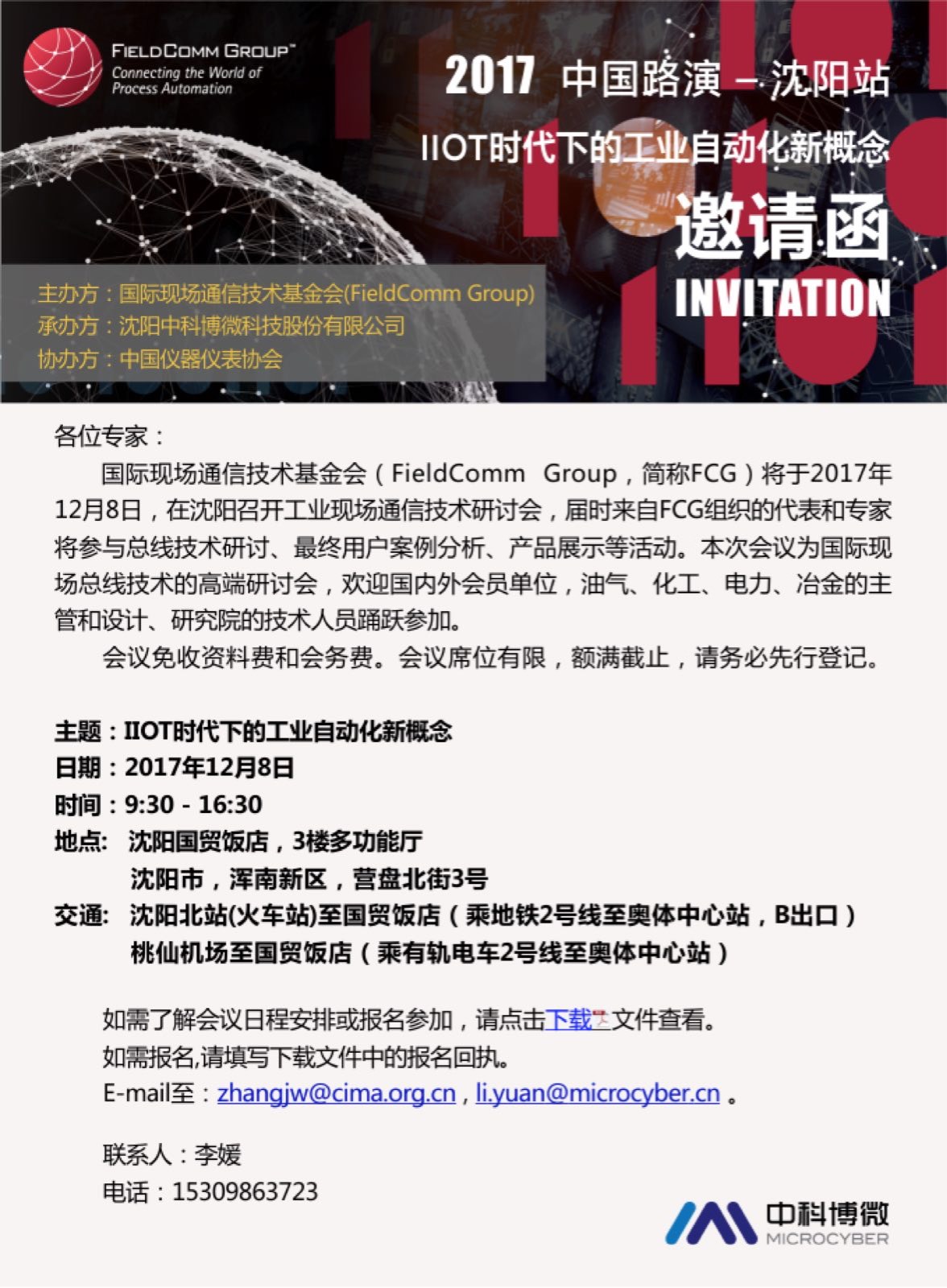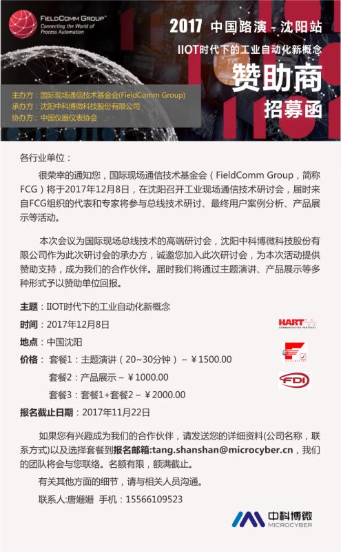“IIOT時(shí)代下的工業(yè)自動(dòng)化新概念”2017 FCG中國(guó)路演–沈陽(yáng)站會(huì)議通知
