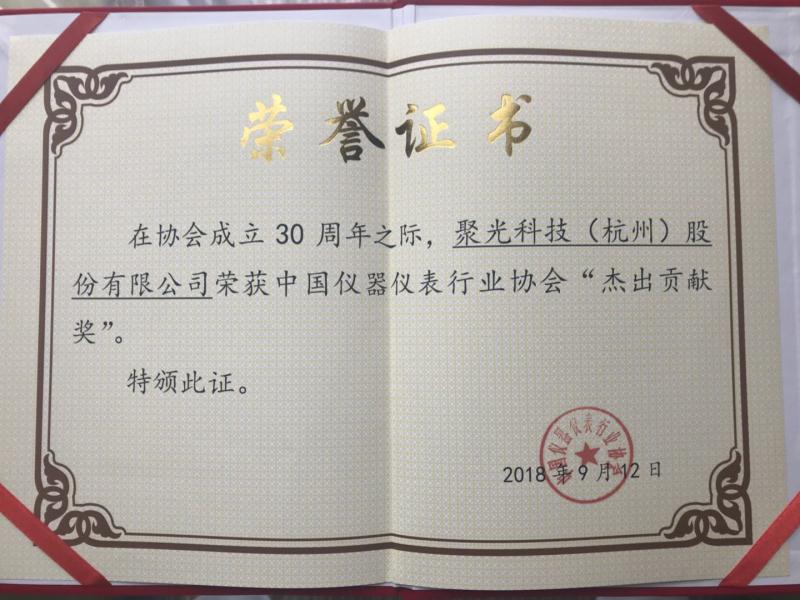 聚光科技(杭州)股份有限公司榮獲中國儀器儀表行業(yè)協(xié)會(huì)杰出貢獻(xiàn)獎(jiǎng)