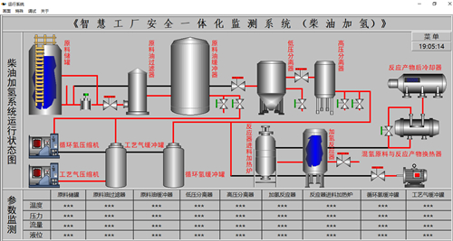 隨著智能制造的興起,智能工廠的功能安全和信息安全聯系更加緊密,如何協同兩者的關系從而進行安全一體化設計與實施成為各界研究的熱點,基于這一理念選擇流程行業中典型的柴油加氫工藝段設計開發了《智慧工廠安全一體化監測系統(柴油加氫)軟件V1.0》。該軟件可實現對智慧工廠的安全一體化監測,支持對智慧工廠監測參數提供實時曲線顯示和歷史曲線查詢,支持對異常數據進行語音報警,支持對所有監測數據提供數據庫存儲、查詢與打印功能。