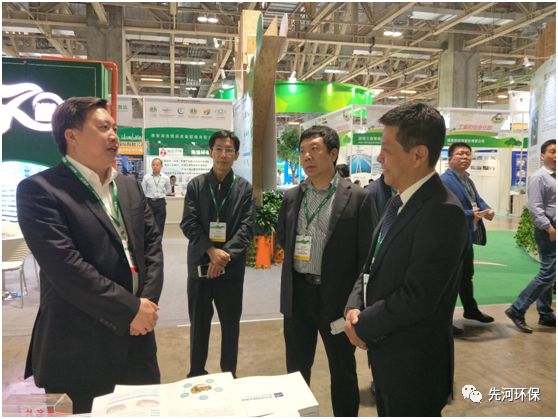 開幕式當天,河北省生態環境廳高建民廳長、河北省生態環境廳科技與對外合作處米海亮處長、河北省環境保護開發服務中心蘭國謙主任一行至先河環保展臺考察。李玉國董事長向高廳長匯報了轉型戰略、技術創新布局以及污水治理、網格化等最新的技術應用,高廳長仔細視察了展位產品并聽取了李董匯報,重點做了三方面的指示: