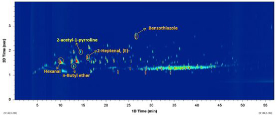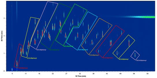 全二維氣相色譜-飛行時間質(zhì)譜聯(lián)用技術(shù)是近十年以來,國際上發(fā)展十分迅猛的色質(zhì)聯(lián)用技術(shù),是色譜-質(zhì)譜聯(lián)用技術(shù)發(fā)展的一個新趨勢,相比于常規(guī)氣質(zhì)聯(lián)用具有高容量、高分離度和高靈敏度等顯著優(yōu)勢,是解決復(fù)雜體系中全組分和痕量組分分析的最佳方案。