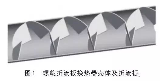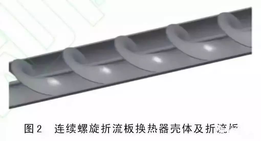 該技術(shù)在石化行業(yè)得到了推廣應(yīng)用。中石化某企業(yè)常減壓裝置采用螺旋折流板換熱器替代了傳統(tǒng)管殼式換熱器后,原油換熱終溫平均提高了16℃,節(jié)能效果顯著。連續(xù)螺旋折流板換熱器是通過采用連續(xù)螺旋折流板作為殼程側(cè)支撐結(jié)構(gòu),消除了1/4螺旋折流板形成的漏流區(qū),使流體形成了連續(xù)而不間斷的真正螺旋曲面運動,流體流速更大,且穩(wěn)定無脈沖,有效防止了換熱管束的振動,傳熱效率提高(圖2)。