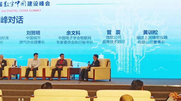 在高峰對話環節中,福建上潤黃訓松董事長與中國城市燃氣協會理事長劉賀明、國家物聯網基礎標準工作組秘書長張暉、微軟公司首席技術顧問管震、小米標準和新技術部總監張明、中國電子學會專家委員會執行秘書長余文科暢聊標準引領物聯網產業良性發展,多角度闡述標準在物聯網產業發展的重要性,高峰對話由中國·福州物聯網開放實驗室總裁高騰主持。