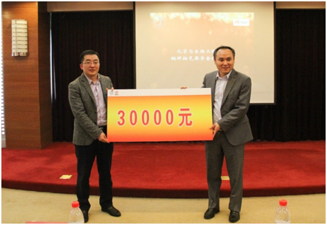 典禮上,鋼研納克黨委書(shū)記、董事長(zhǎng)高宏斌做題為《從理學(xué)之美到職業(yè)之美》的報(bào)告,代表鋼研納克向北京科技大學(xué)化學(xué)與生物工程學(xué)院捐贈(zèng)三萬(wàn)元獎(jiǎng)學(xué)金,與曾芳書(shū)記現(xiàn)場(chǎng)為獲獎(jiǎng)學(xué)生頒發(fā)獎(jiǎng)狀和獎(jiǎng)學(xué)金。
