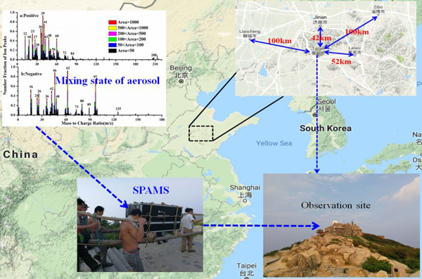 南京信息工程大學銀燕教授團隊,于2017年夏季在泰山玉皇頂開展氣溶膠綜合觀測實驗,首次使用單顆粒飛行時間質譜儀(SPAMS,廣州禾信)研究了泰山頂氣溶膠混合狀態及其粒徑分布特征,并探討氣溶膠混合狀態對新粒子增長過程的影響。