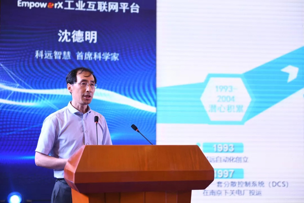 在正式發布之前,科遠智慧首席科學家沈德明教授發表《面向工業的賦能平臺——EmpoworX工業互聯網平臺》報告,詳細介紹了EmpoworX工業互聯網平臺架構及相關功能。