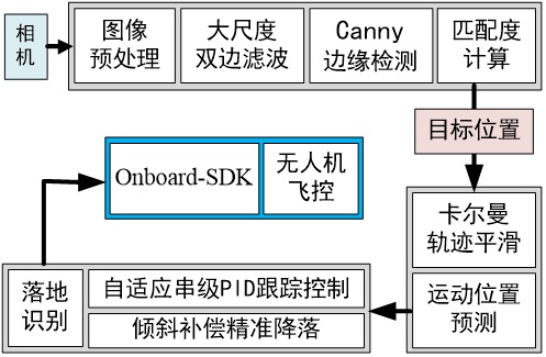 針對上述問題,科研人員設(shè)計并實現(xiàn)了基于視覺技術(shù)的車載無人機系統(tǒng)。此無人機搭載在地面的排爆機器人上,可根據(jù)需要一鍵起飛,并且能實時跟蹤地面機器人進(jìn)行協(xié)同飛行,為地面機器人提供第三視角。也可以遙控進(jìn)行遠(yuǎn)程偵查,主動目標(biāo)搜索,對現(xiàn)場環(huán)境進(jìn)行預(yù)先判斷,抓取作業(yè)時可為操作手提供第三視角進(jìn)行輔助等。執(zhí)行完任務(wù)后無人機可一鍵自主返航,并且精確降落在地面機器人平臺上,然后隨機器人一同返回。該研究得到了國家重點研發(fā)計劃的支持。