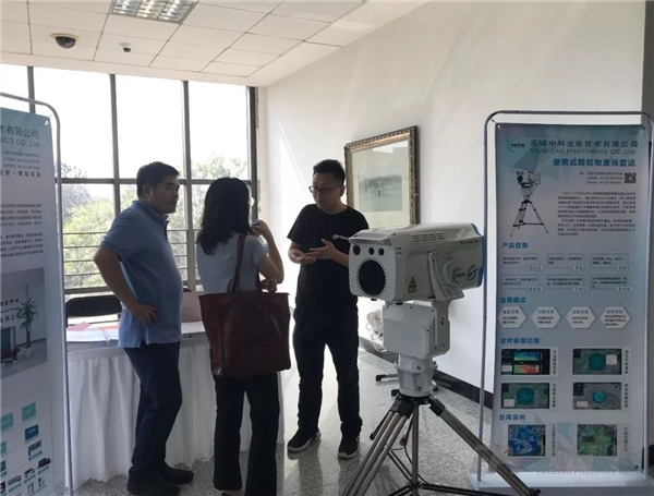 參觀者詳細(xì)了解便攜式顆粒物激光雷達(dá)