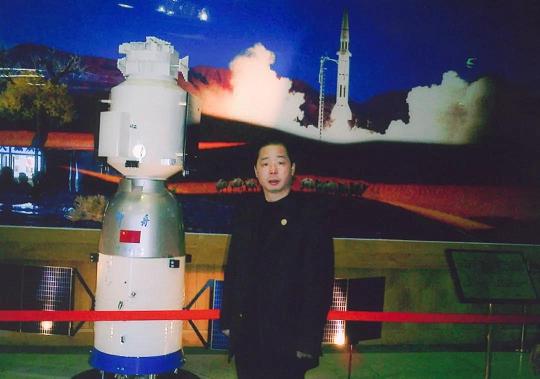 神五發(fā)射期間,胡成中是唯一受邀現(xiàn)場觀禮的民營企業(yè)嘉賓。圖為其在酒泉衛(wèi)星發(fā)射中心留影