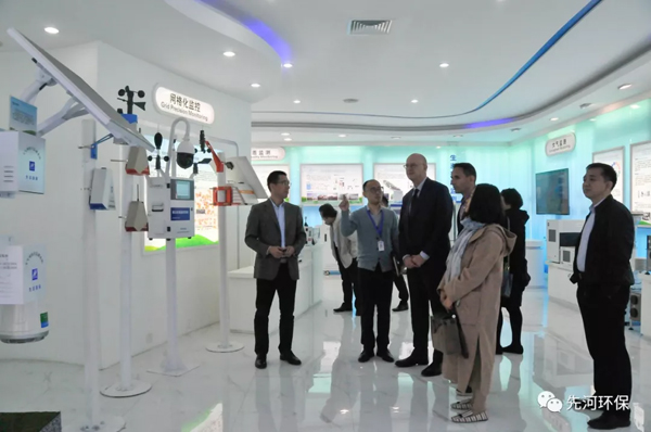 Peter White總經(jīng)理一行首先參觀了公司展廳、生態(tài)環(huán)境大數(shù)據(jù)應(yīng)用中心,劉春田副總裁進(jìn)行了整體介紹。劉總表示,作為智慧環(huán)境及大數(shù)據(jù)應(yīng)用系統(tǒng)的開創(chuàng)者,先河環(huán)保結(jié)合各地政府管理需求,建立了“天地空一體化監(jiān)測網(wǎng)”,為科學(xué)治霾、精準(zhǔn)治污提供決策依據(jù)。先河基于“環(huán)保物聯(lián)網(wǎng)”和“大數(shù)據(jù)”的先進(jìn)設(shè)計思想,通過自主創(chuàng)新,率先在業(yè)內(nèi)推出的生態(tài)環(huán)境網(wǎng)格化系統(tǒng),目前已在全球十幾個國家,以及中國18個省、137個城市推廣應(yīng)用,為生態(tài)環(huán)境的精細(xì)化監(jiān)測、污染防治提供科學(xué)有效的技術(shù)支撐和保障。而在大數(shù)據(jù)應(yīng)用上,公司利用環(huán)境數(shù)據(jù),結(jié)合地理信息、氣象信息,進(jìn)行環(huán)境分析研判,協(xié)助各地用戶診斷環(huán)境問題、科學(xué)減排。目前在大氣及水環(huán)境領(lǐng)域,已有相對成熟的應(yīng)用經(jīng)驗(yàn)。