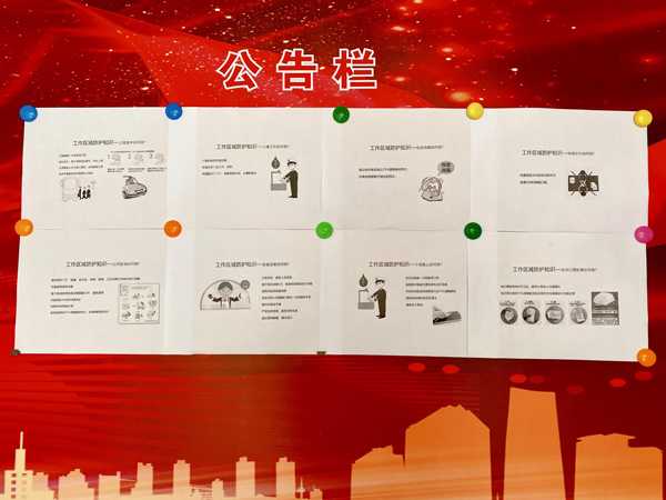 通過辦公場所張貼宣傳提示,指導員工學習,并執行相關過程記錄、完成核對確認,防疫小組進行每日防疫措施計劃的分配并責任到人。