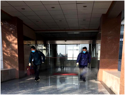 中心辦公室組織開展園區的清潔和消毒工作
