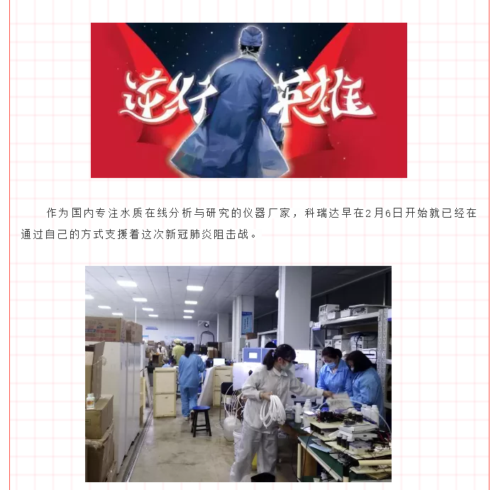2月9日,第一時間與園區(qū)領導申請復工復產。加班加點,生產余氯在線分析儀,2月12日派物資專車馳援武漢,2月13日到達龔家?guī)X收費站,完成無接觸交貨;