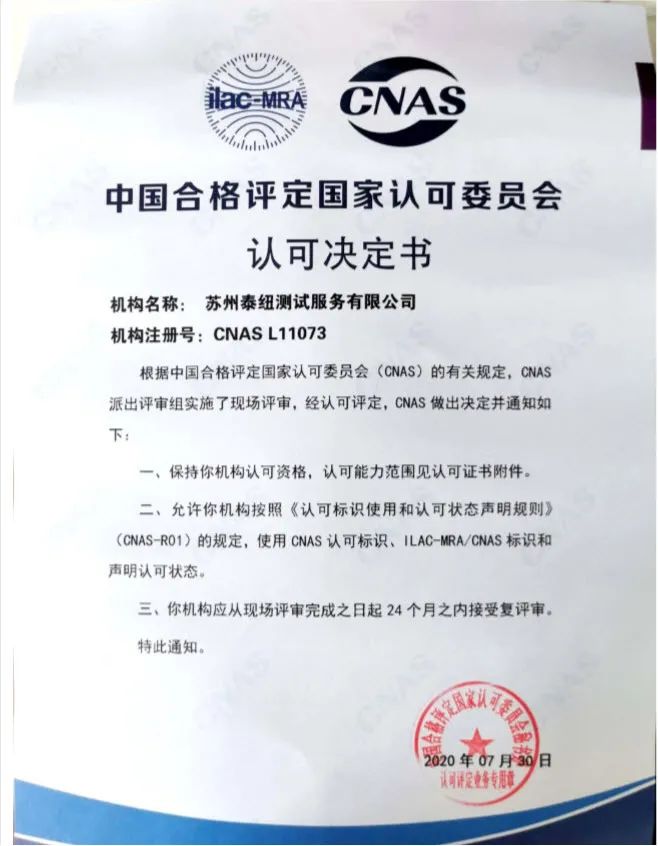 蘇州泰紐測試服務有限公司于2020年7月30日獲得中國合格評定國家認可委員會(CNAS)復評審, 這是泰紐測試CNAS核磁實驗室自2017年正式運轉以來,連續3年順利地通過了現場評審。
