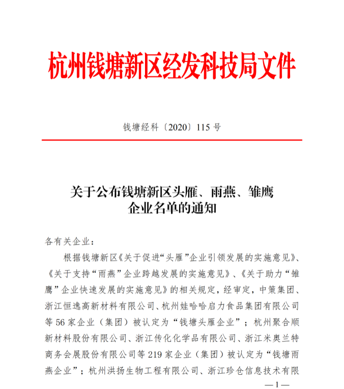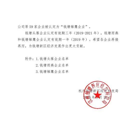 近日,杭州錢塘新區經發科技局印發《關于公布錢塘新區頭雁、雨燕、雛鷹企業名單的通知》。根據通知內容,杭州美儀自動化有限公司被認定為“錢塘雨燕企業”。