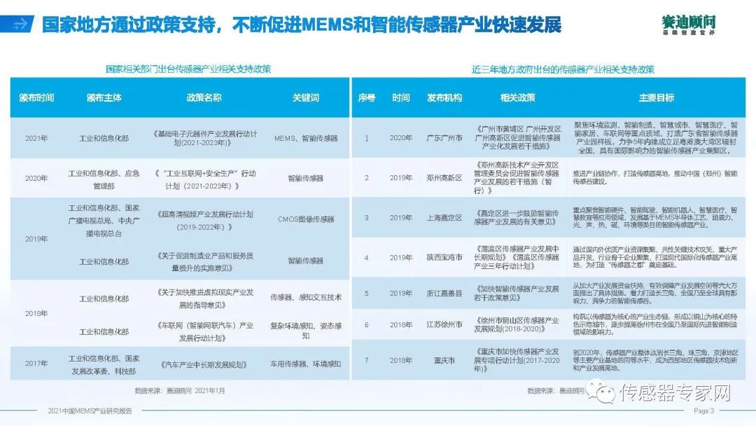 基于MEMS產(chǎn)業(yè)的重要地位,最近幾年,從2017年開始,國家層面每年都有新的政策和規(guī)劃出來,促進我們產(chǎn)業(yè)的發(fā)展。