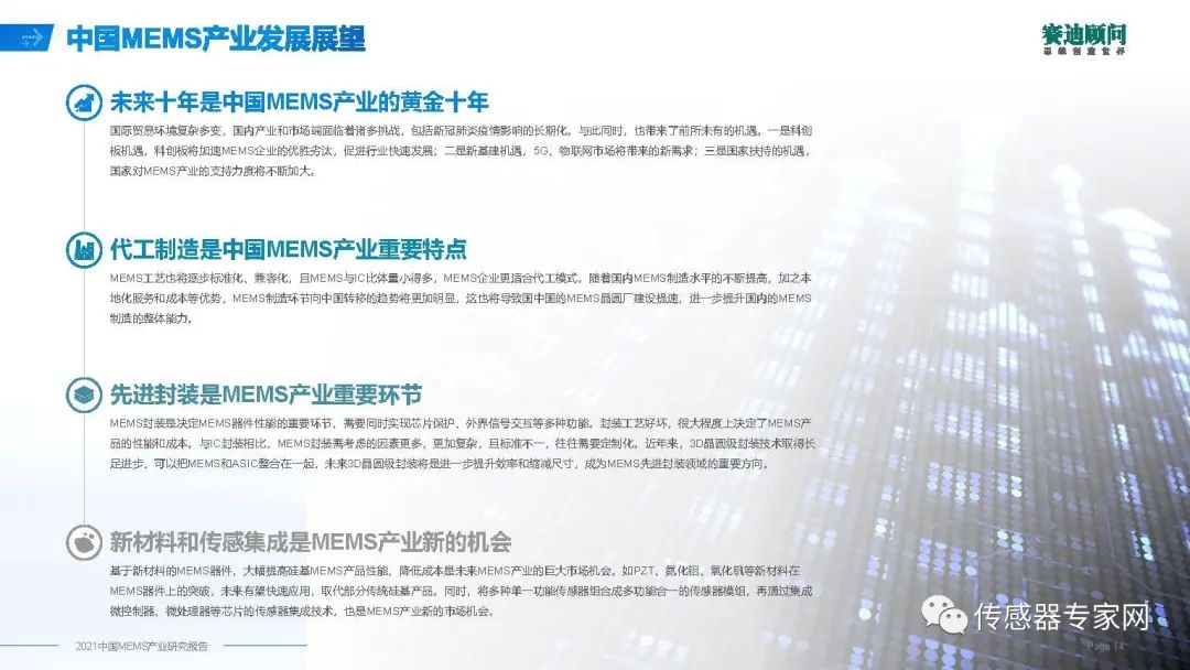 賽迪顧問作為直屬于工業(yè)和信息化部中國電子信息產(chǎn)業(yè)發(fā)展研究院的產(chǎn)業(yè)研究機構(gòu),對中國相關(guān)產(chǎn)業(yè)決策支撐起到關(guān)鍵作用,本報告及演講內(nèi)容對了解當(dāng)前中國MEMS產(chǎn)業(yè)情況極具參考價值。