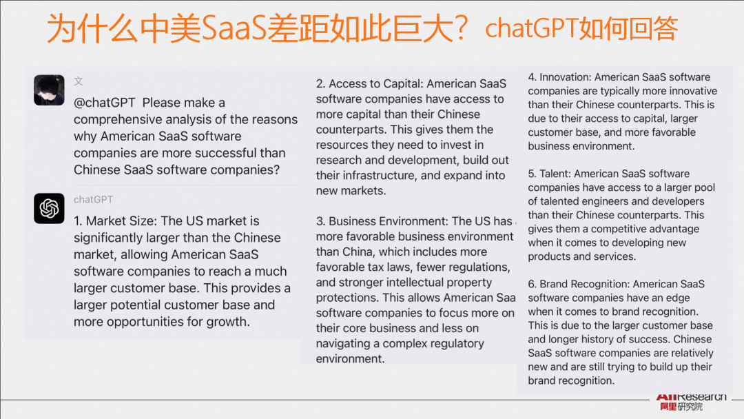 為什么中美SaaS差距如此巨大?看看ChatGPT的回答