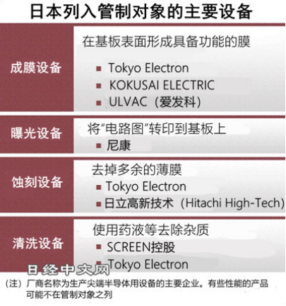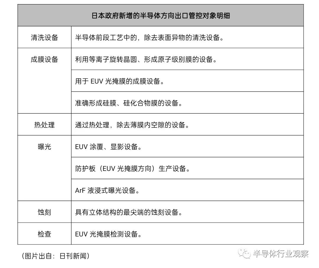 日本經(jīng)濟(jì)產(chǎn)業(yè)省發(fā)布的清單涉及清洗、成膜、熱處理、曝光、蝕刻、檢查等23個(gè)種類,包括極紫外(EUV)相關(guān)產(chǎn)品的制造設(shè)備和三維堆疊存儲(chǔ)器的蝕刻設(shè)備等。