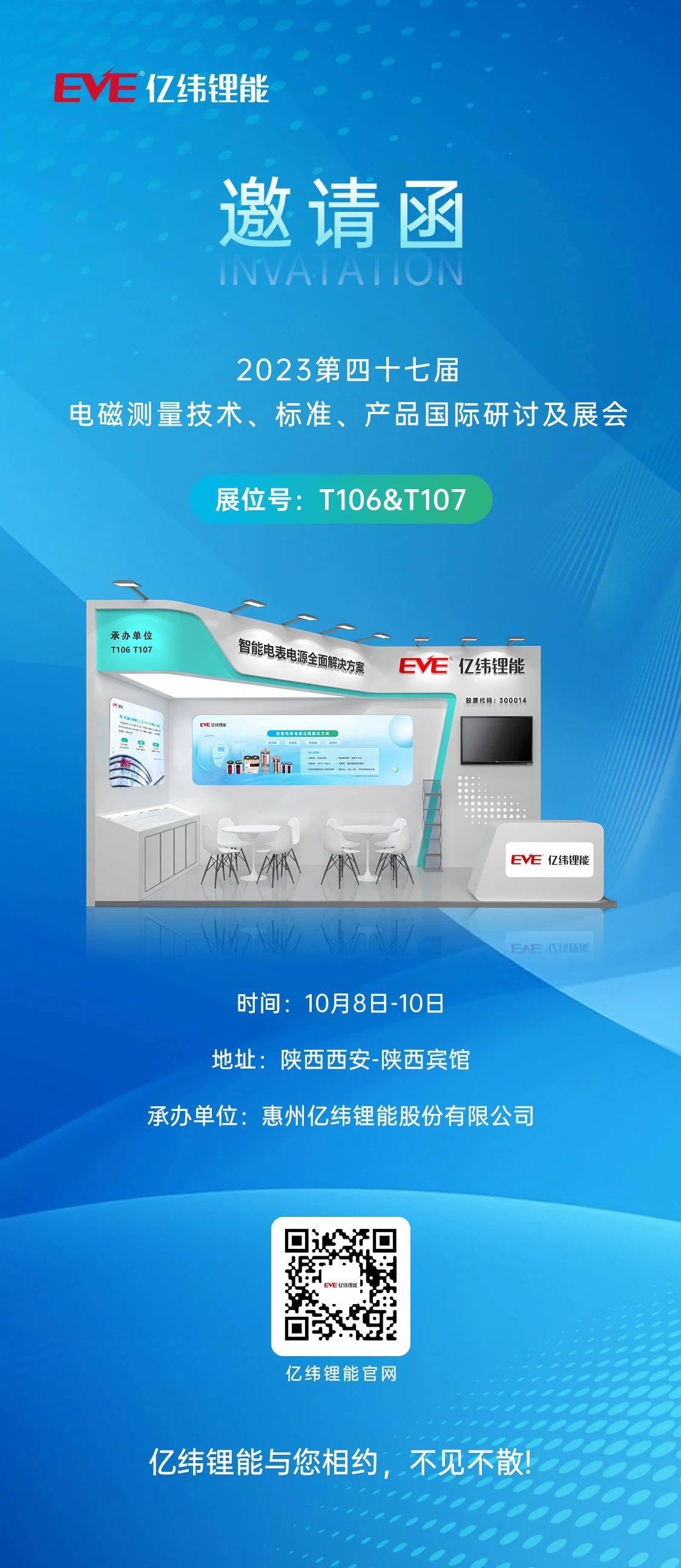 2023第四十七屆電磁測量技術(shù)、標準、產(chǎn)品國際研討及展會將于2023年10月8-10日在西安 ‧ 陜西賓館盛大開幕。這是一場由全國電工儀器儀表標準化技術(shù)委員會主辦、惠州億緯鋰能股份有限公司(簡稱:億緯鋰能)承辦的、將“產(chǎn)、學、研、用”相融合的行業(yè)盛會。作為全球鋰電池頭部企業(yè),億緯鋰能將攜智能電表電源全面解決方案精彩亮相。誠邀您蒞臨參觀(展位號:T106&T107)!