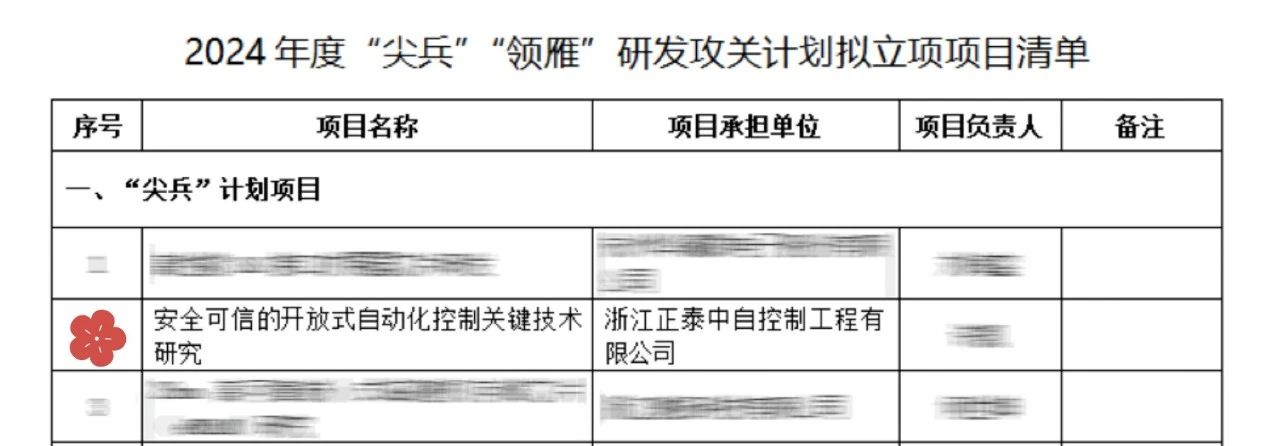 近日,浙江省科學(xué)技術(shù)廳公布《關(guān)于下達(dá)2024年度“尖兵領(lǐng)雁+X”研發(fā)攻關(guān)計(jì)劃第一批項(xiàng)目的通知》。由正泰中自牽頭承擔(dān)的《安全可信的開放式自動(dòng)化控制關(guān)鍵技術(shù)研究》項(xiàng)目成功入選,其核心產(chǎn)品“泰和”系統(tǒng)還入編了國家級高校教材應(yīng)用案例。
