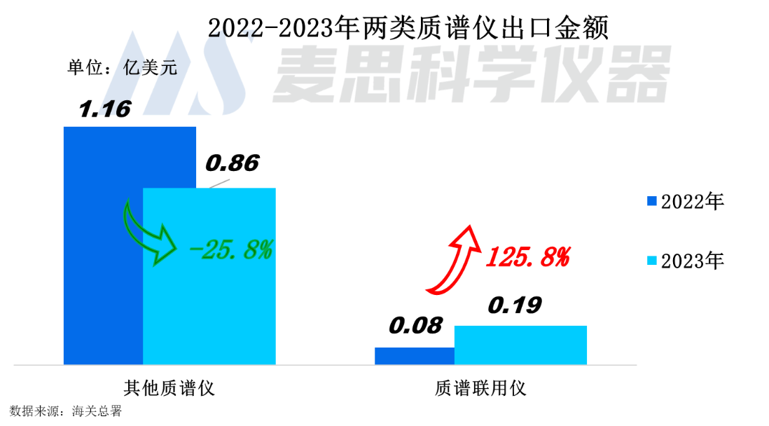2023年我國質譜儀器出口金額達1.05億美元(約合人民幣7.35億元),同比下降15.5%