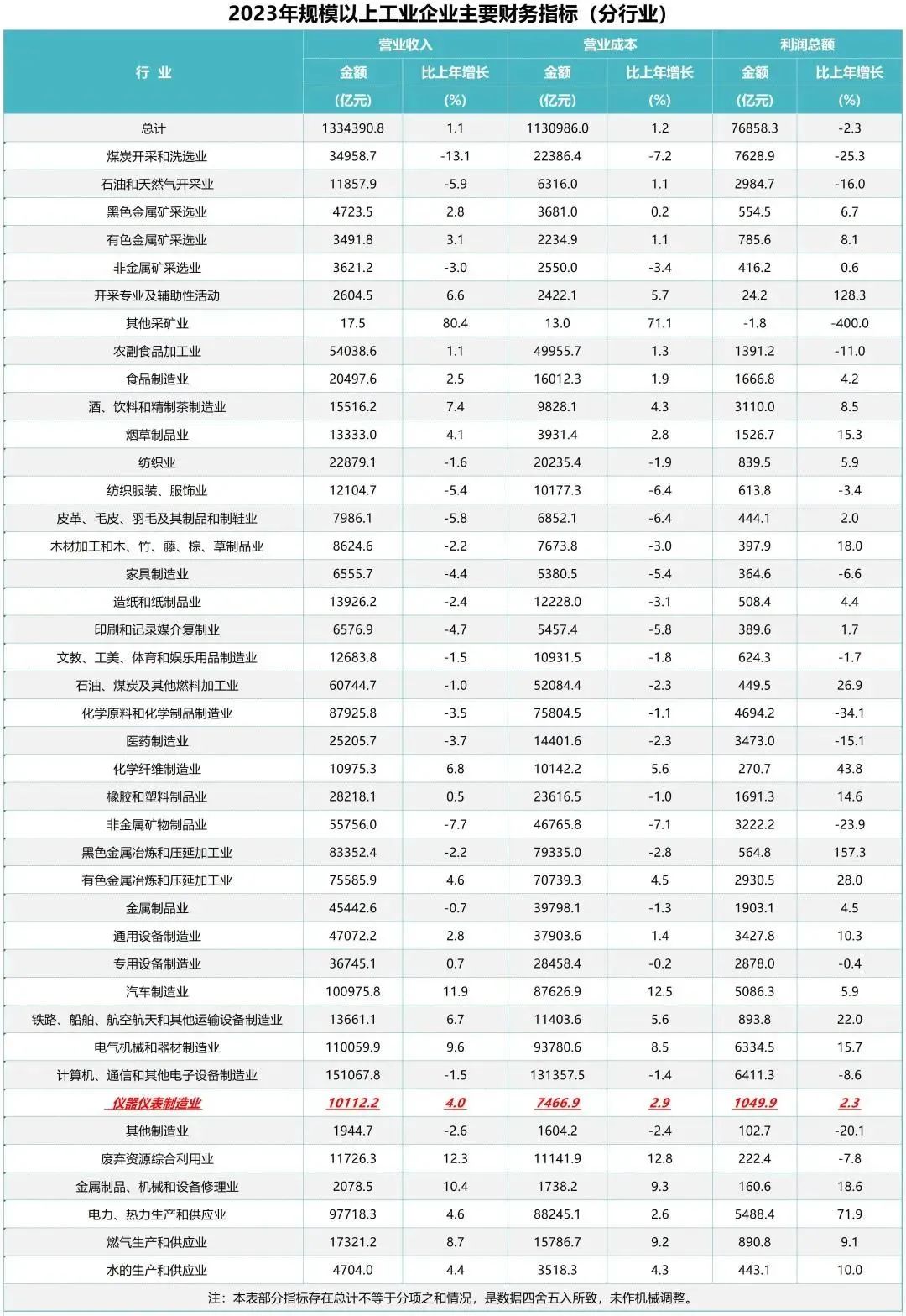2023年,全國(guó)規(guī)模以上工業(yè)企業(yè)實(shí)現(xiàn)利潤(rùn)總額76858.3億元,比上年下降2.3%,降幅比1—11月份收窄2.1個(gè)百分點(diǎn)。