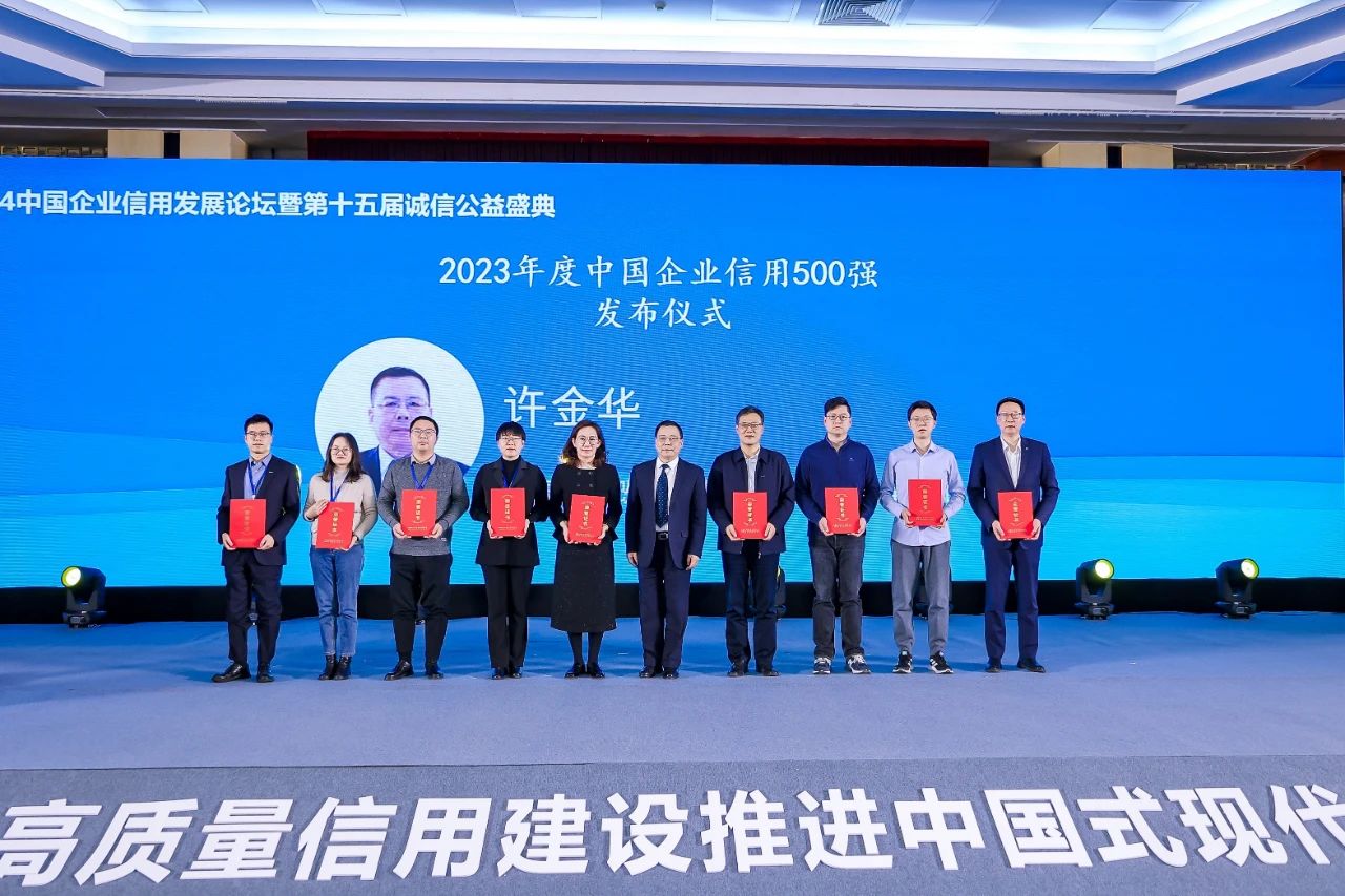 1月21日,2024中國企業信用發展論壇暨第十五屆誠信公益盛典在北京成功召開。中國企業改革與發展研究會常務副會長許金華在論壇上發布了2023年度中國企業信用500強中國上市公司信用500強