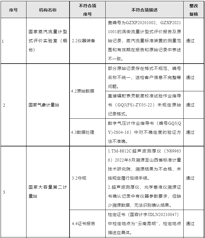 現(xiàn)場(chǎng)隨機(jī)抽查150份受檢機(jī)構(gòu)存檔證書(shū)(報(bào)告)及相應(yīng)原始記錄,發(fā)現(xiàn)存在人員培訓(xùn)不足、原始數(shù)據(jù)有誤等不符合項(xiàng),未發(fā)現(xiàn)嚴(yán)重違法違規(guī)行為。
