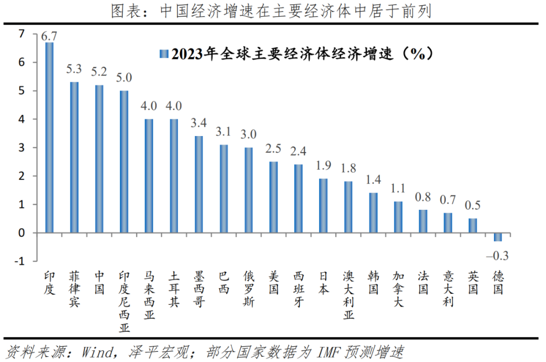 中國(guó)是全球經(jīng)濟(jì)增長(zhǎng)的最大貢獻(xiàn)者,約為32%,遠(yuǎn)高于印度的15%和美國(guó)的11%。按照可比價(jià)計(jì)算,2023年經(jīng)濟(jì)增量超過6萬億元,相當(dāng)于一個(gè)中等經(jīng)濟(jì)體一年的經(jīng)濟(jì)總量。根據(jù)IMF研究,我國(guó)經(jīng)濟(jì)增長(zhǎng)的溢出效應(yīng)明顯,經(jīng)濟(jì)增長(zhǎng)1%,將帶動(dòng)其他經(jīng)濟(jì)體產(chǎn)出水平提高0.3%。