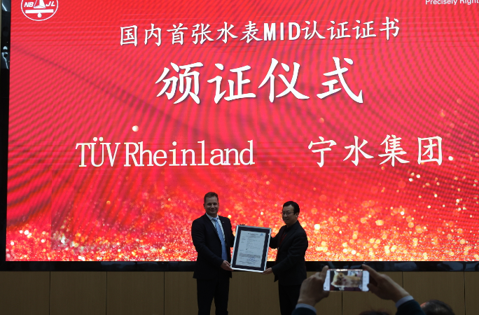 近日,寧波水表科技(集團)股份有限公司在國家水表產品質量檢驗檢測中心(寧波中心)通過德國萊茵TUV認證公司認證,獲得國內頒發的首張MID認證證書。