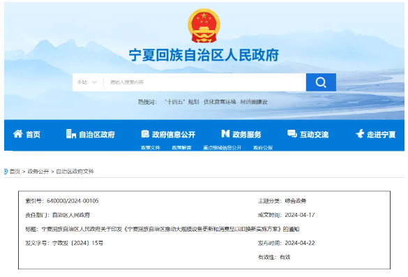 設備更新 新政發布 | 寧夏回族自治區推動大規模設