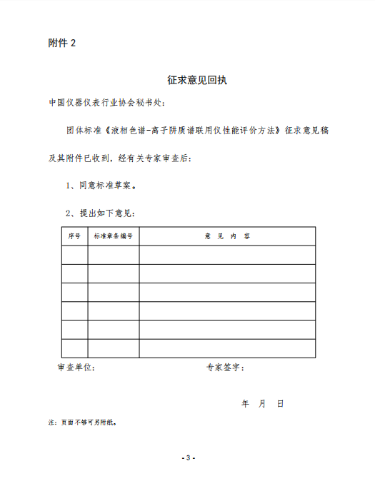 2.征求意見回執—— 液相色譜-離子阱質譜聯用儀性能評價方法