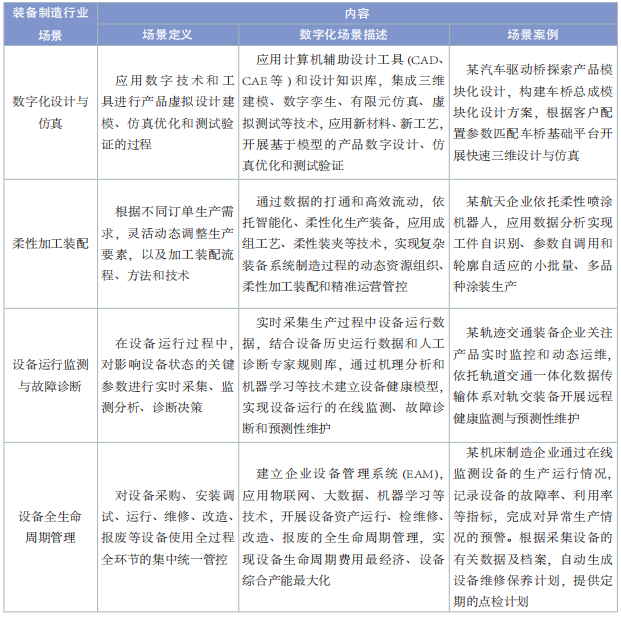 表2 裝備制造行業(yè)數字化轉型典型場景內容