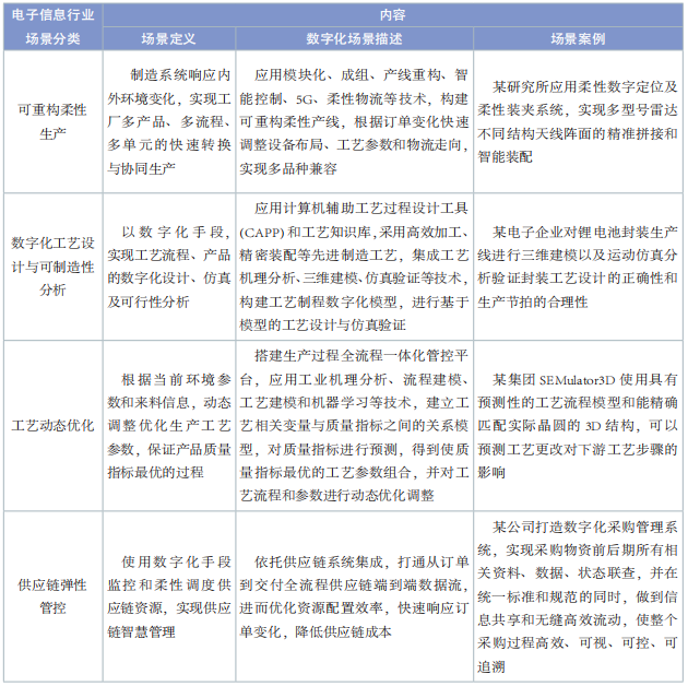 表3 電子信息行業(yè)數字化轉型典型場景內容
