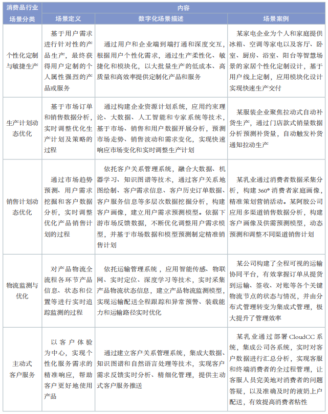 表 4 消費品行業(yè)數字化轉型典型場景內容