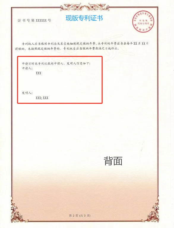 對于授權公告日在2024年6月1日之后(含當日)的專利,國家知識產權局頒發新版專利證書。新版專利證書沿用A4規格豎排版式,優化調整著錄事項布局。