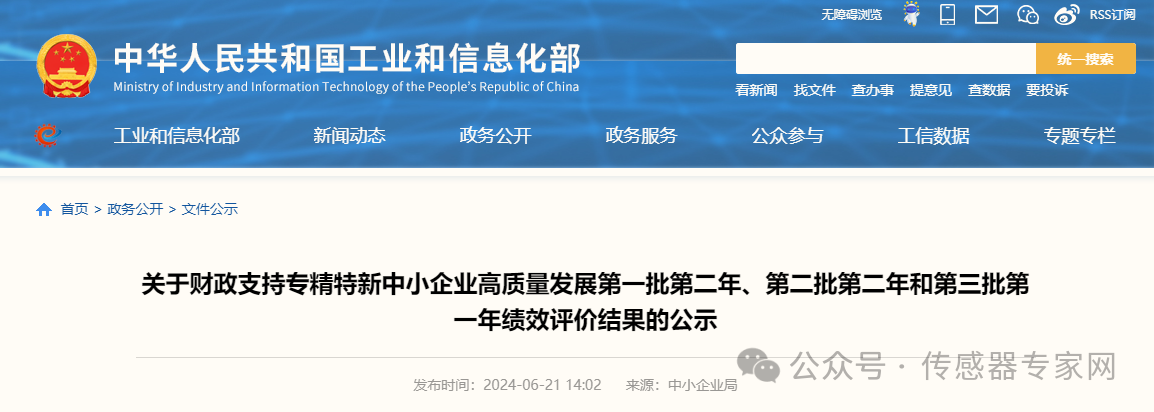 6月21日,工信部公示財政支持專精特新中小企業(yè)高質量發(fā)展第一批第二年、第二批第二年和第三批第一年績效評價結果,共計1188家。公示時間為2024年6月21日至6月27日。