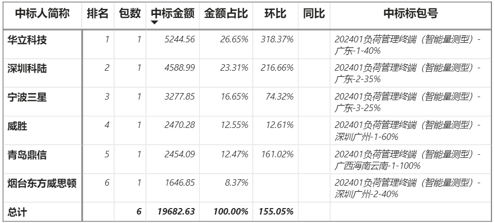 總金額1.97億元,6家企業實現中標,華立中標最大包5244.56萬元;
