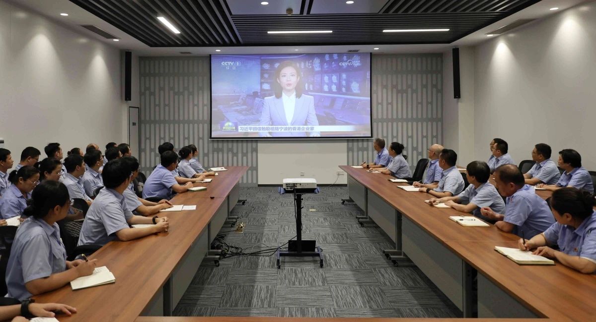 8月1日晚上7時,在位于寧波高新區的寧波永新光學股份有限公司,數十名科技工作者坐在會議室內,共同收看《新聞聯播》。當習近平回信勉勵祖籍寧波的香港企業家新聞播出時,守在屏幕前的科技工作者臉上露出了自豪的笑容。