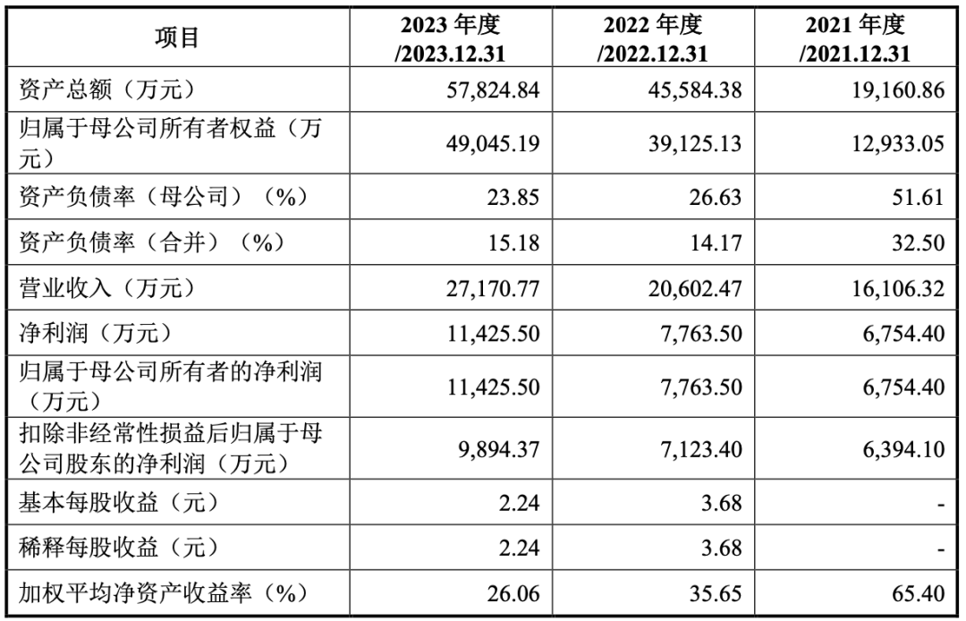2021年—2023年(下稱“報告期”),公司營業收入分別為16106.32萬元、20602.47萬元和27170.77萬元。