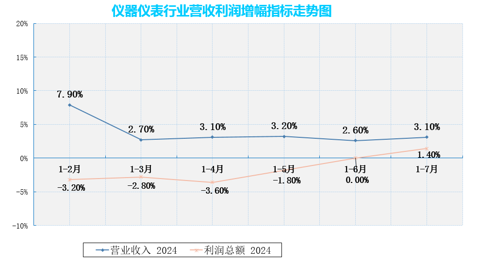 國家統計局發布最新數據,1—7月份,儀器儀表制造業營業收入5527.3億元,同比增長3.1%,實現利潤總額533.3億元,同比增長1.4%1-6月利潤總額同比增幅為0%),整體而言,儀器儀表制造業企業利潤有所改善。