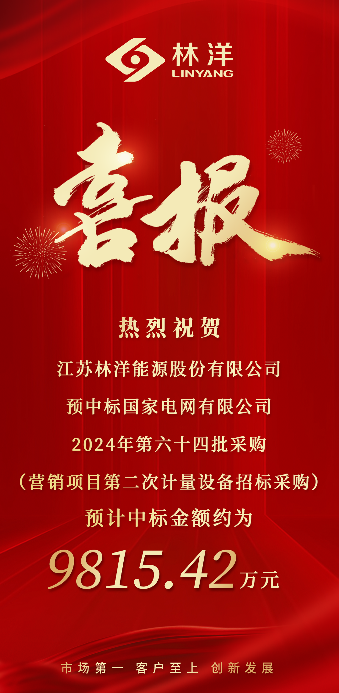 8月29日,林洋能源(601222.SH)發(fā)布公告,預(yù)中標(biāo)國(guó)家電網(wǎng)有限公司2024年第六十四批采購(gòu)(營(yíng)銷(xiāo)項(xiàng)目第二次計(jì)量設(shè)備招標(biāo)采購(gòu))項(xiàng)目,共中6個(gè)包,預(yù)計(jì)中標(biāo)金額約為9815.42萬(wàn)元,這是市場(chǎng)與客戶(hù)對(duì)林洋產(chǎn)品、品牌以及實(shí)力的信賴(lài)與肯定!